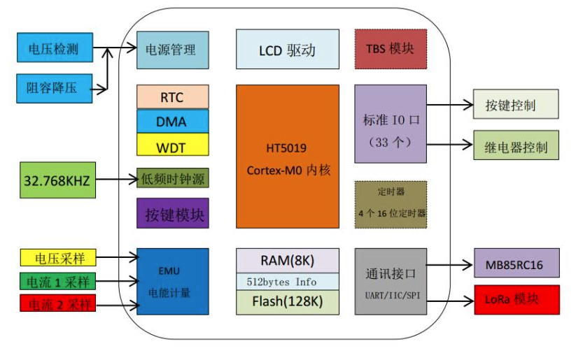 1.本方案采用鉅泉光電全SOC芯片HT5019進行設(shè)計,該芯片集成了電能計量、RTC時鐘、LCD驅(qū)動等外設(shè)模塊,非常適用于電能計量插排、出租屋電表、空調(diào)用插排等產(chǎn)品上。